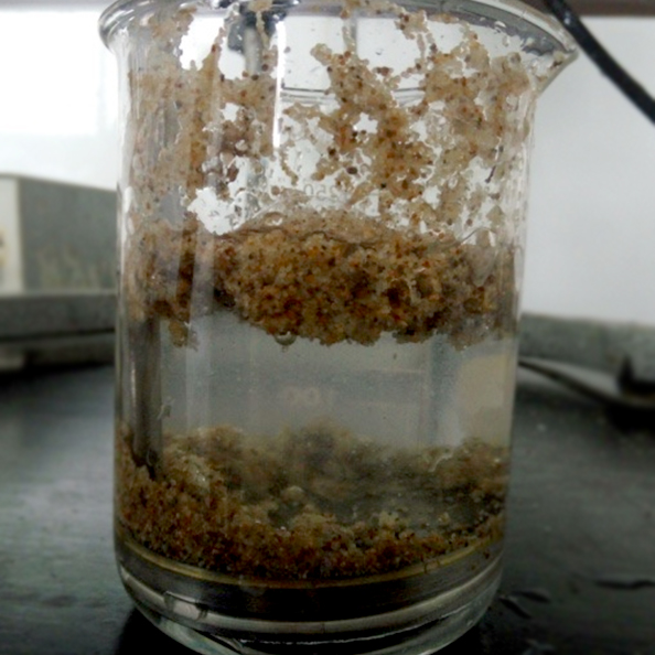 长江科特®清水压裂支撑剂属于新开发环保型功能产品,具有完全自主知识产权(已申报发明专利)。该产品树脂膜具有与水进行化学反应的基本技术特点,当预固化的高分子树脂膜与水接触后发生化学反应自身体积膨胀造成支撑剂颗粒物因排水量增加受到水的浮力增加,实现其在水中悬浮的目的。同时利用固相-液相-气相三界面间的界面张力不同形成支撑剂颗粒物下沉重力相抵消的合力和阻力,减缓支撑剂颗粒下沉速率,从而满足于清水压裂施工的泵送条件,在不添加任何增粘剂的清水压裂施工中实现更深入井下压裂裂隙的目的。
